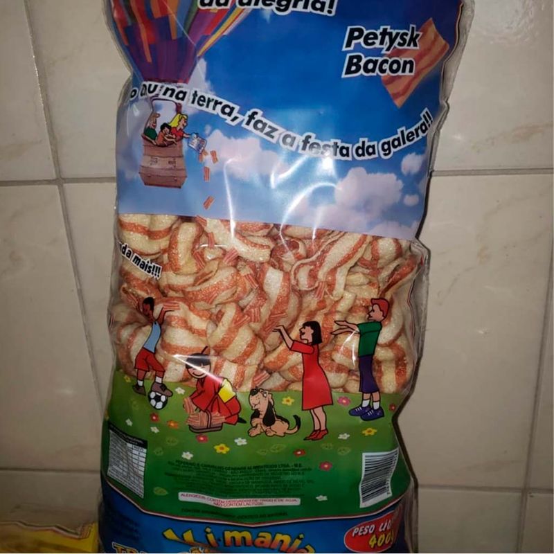 Salgadinho crocante e delicioso no sabor bacon. Embalagem de 400 gramas ideal para dividir com os amigos ou para festas, eventos ou comemorações.