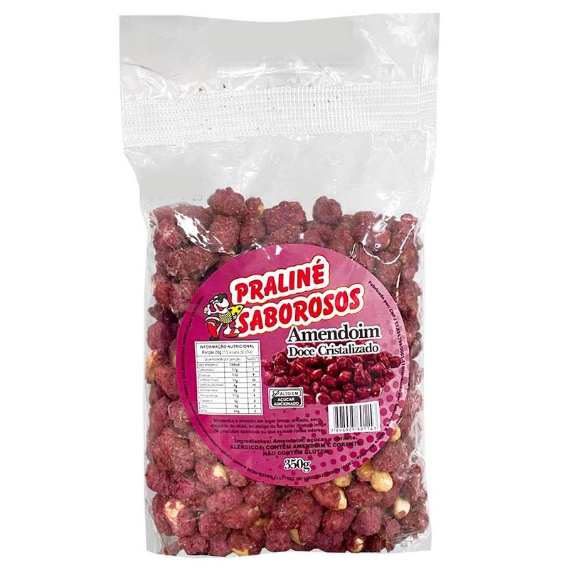 Ingredientes: amendoim, açúcar e corante. Alérgicos: contém amendoim e corante. Não contém glúten.