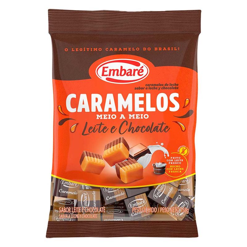 Deliciosos caramelos meio a meio divididos nos sabores chocolate e leite. Embalados individualmente.