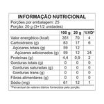 Ingredientes: açúcar, xarope de glicose, água, gelatina, umectante sorbitol, acidulantes ácido cítrico e ácido láctico, geleificante pectina, aromatizante, antioxidante lactato de sódio e corante tartrazina. NÃO CONTÉM GLÚTEN.