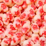 Ingredientes: xarope de glicose, açúcar, água, gelatina, triglicerídeos de cadeia média, acidulantes ácido cítrico e ácido lático (L-), gelificante pectinas, aromatizantes, corantes dióxido de titânio e vermelho allura Ac, antioxidante lactato de sódio e glaceantes cera de carnaúba e cera de abelha. Não contém glúten.