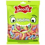 Ingredientes: xarope de glicose, açúcar, água, gelificante gelatina, amido de milho, acidulante ácido cítrico, regulador de acidez ácido málico e citrato de sódio, corante inorgânico dióxido de titânio, aromatizantes, corantes artificiais vermelho 40, tartrazina, amarelo crepúsculo e azul brilhante FCF. Não contém glúten.