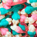 Ingredientes: xarope de glicose, açúcar, água, amido modificado, gelatina, triglicerídeos de cadeia média, acidulantes ácido cítrico e ácido lático (L-), aromatizantes, antioxidante lactato de sódio, corantes dióxido de titânio, azul brilhante FCF e azorrubina e glaceantes cera de carnaúba e cera de abelha. Não contém glúten.