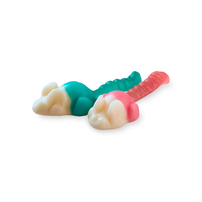 Ingredientes: xarope de glicose, açúcar, água, amido modificado, gelatina, triglicerídeos de cadeia média, acidulantes ácido cítrico e ácido lático (L-), aromatizantes, antioxidante lactato de sódio, corantes dióxido de titânio, azul brilhante FCF e azorrubina e glaceantes cera de carnaúba e cera de abelha. Não contém glúten.