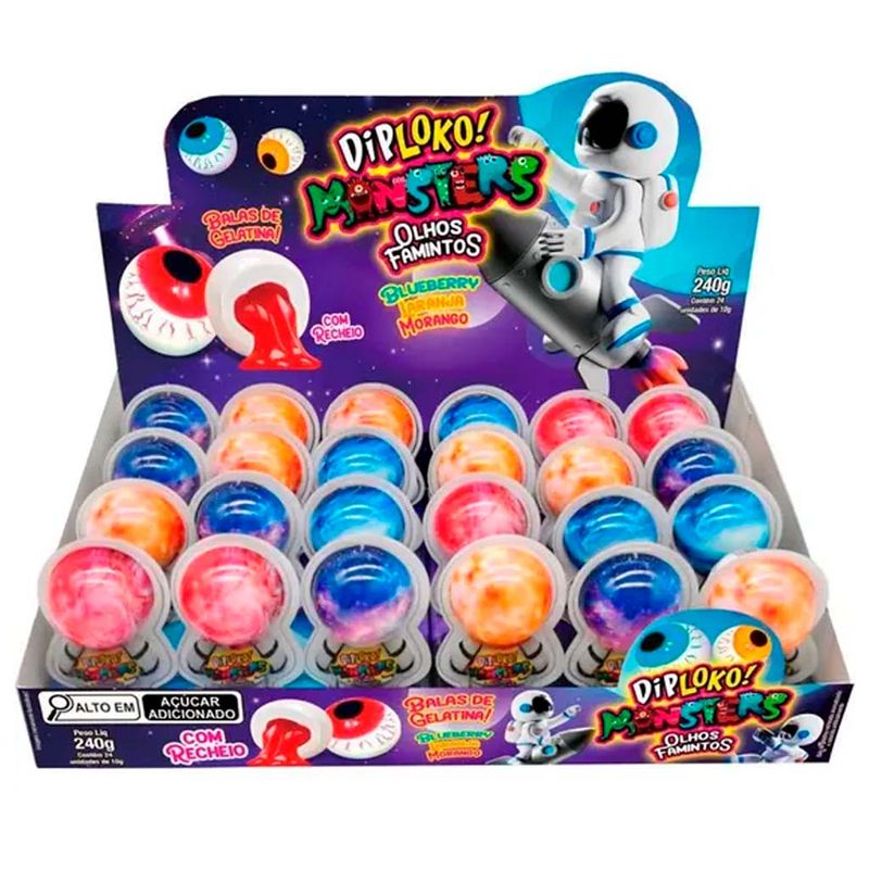 Dip Loko Olhos Famintos Astronaura, diversão garantida no Halloween! Balas de gelatina em formato de olho, com recheio delicioso e nos sabores blueberry, laranja e morango. Acompanha embalagens temáticas super divertidas, perfeitas para lembrancinhas e para deixar a festa das crianças ainda mais animada. Contém 24 unidades sortidas.