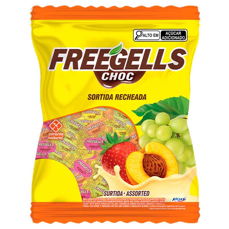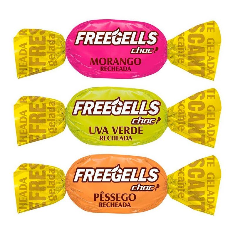Freegells Choco, a bala mentolada com recheio de chocolate branco nos sabores: morango, uva verde e pêssego. Ideal para compor lembrancinhas de aniversário, revender em seu comércio ou deixar na bolsa para saborear a qualquer hora.