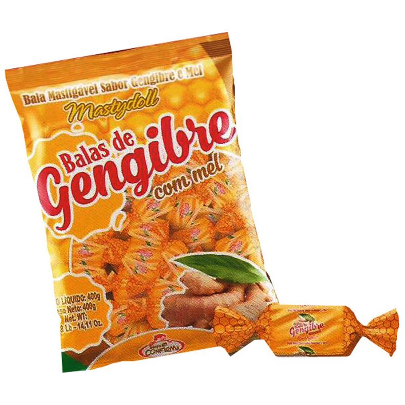 Bala mastigável sabor gengibre e mel. Embalagem de 400g com aproximadamente 100 unidades.