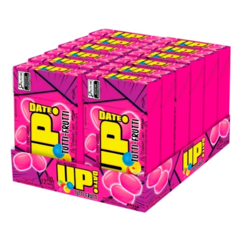 Bala mastigável drageada Up Date sabor tutti frutti. Display de 300g contendo 12 unidades de 25g cada. No tamanho ideal para te acompanhar em qualquer lugar.