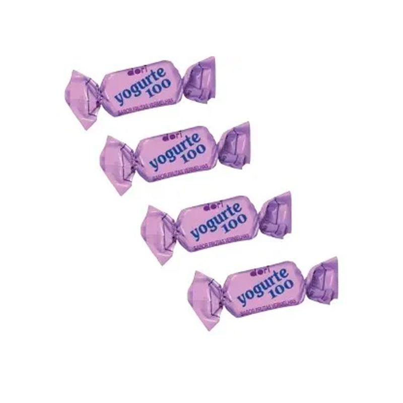 Tradicional e deliciosa bala mastigável Yogurte 100 agora no sabor frutas vermelhas. Embalagem de 600g contendo aproximadamente 120 unidades.