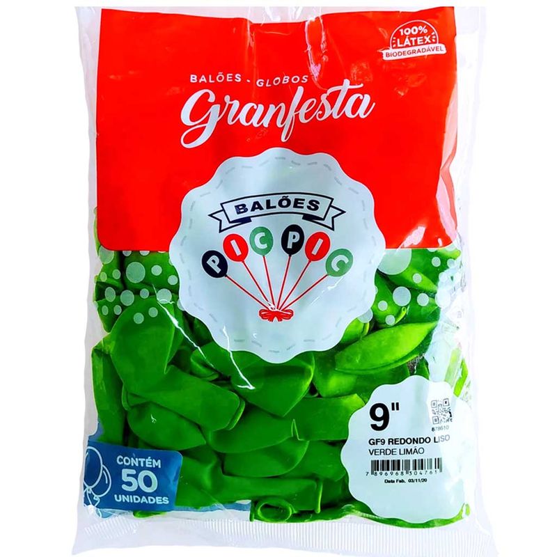 Balão GranFesta Redondo Tamanho 9 Verde Limão c/50 - Pic Pic