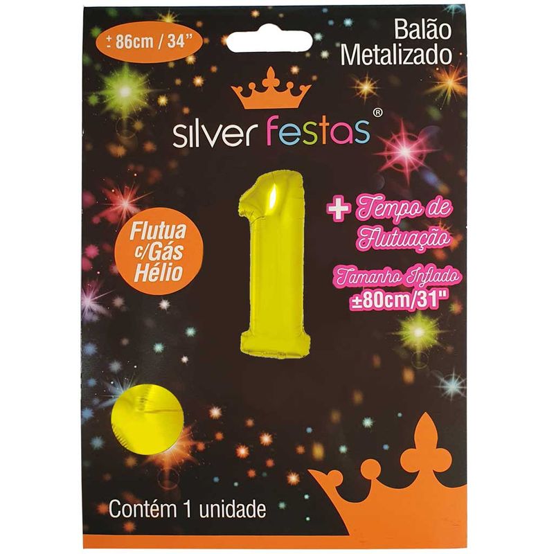 Balão Metalizado Ouro 80cm Número 1 - Silver Festas