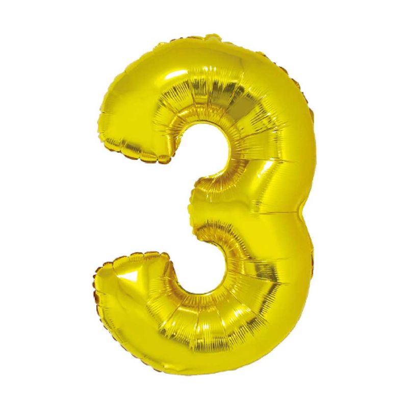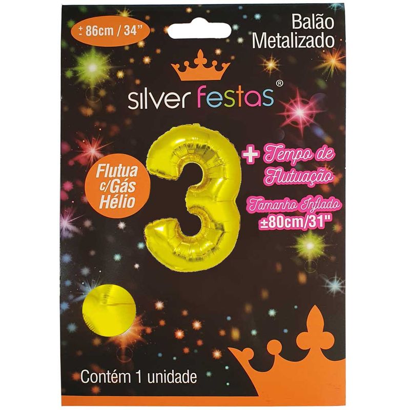 Balão Metalizado Ouro 80cm Número 3 - Silver Festas