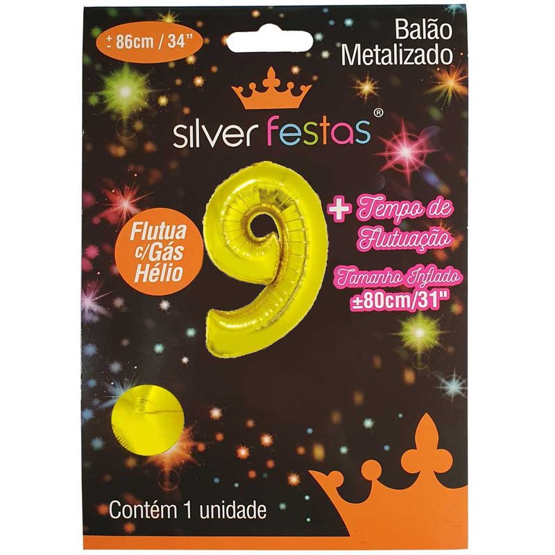 Balão Metalizado Ouro 80cm Número 9 - Silver Festas