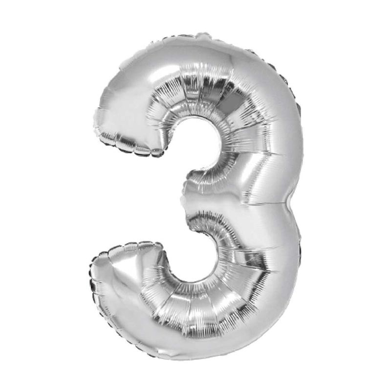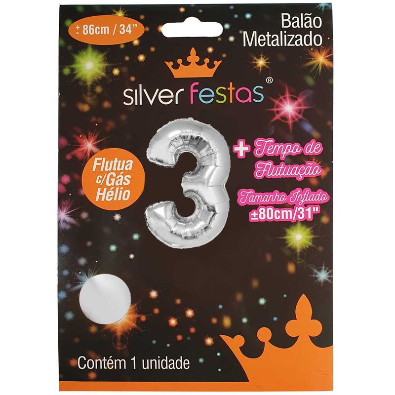 Balão Metalizado Prata 80cm Número 3 - Silver Festas