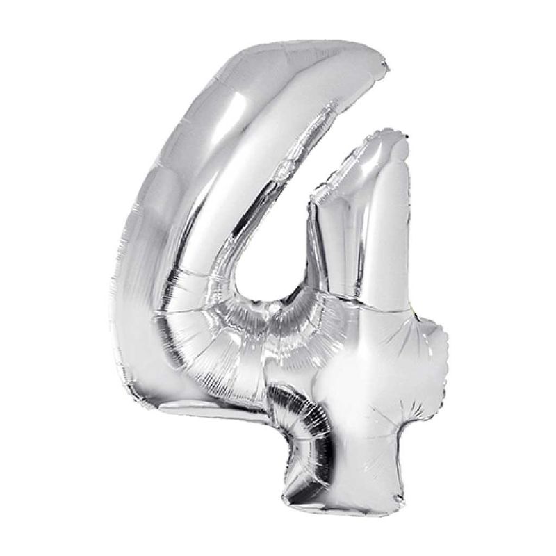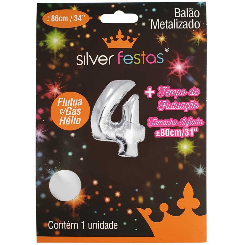 Balão Metalizado Prata 80cm Número 4 - Silver Festas