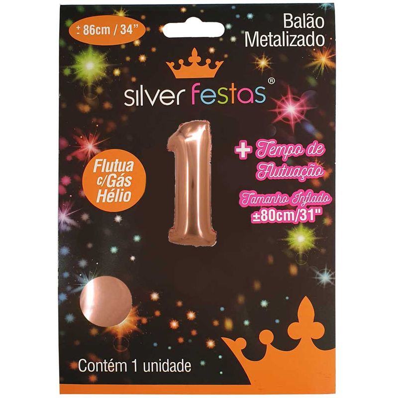 Balão Metalizado Rosê Gold 80cm Número 1 - Silver Festas