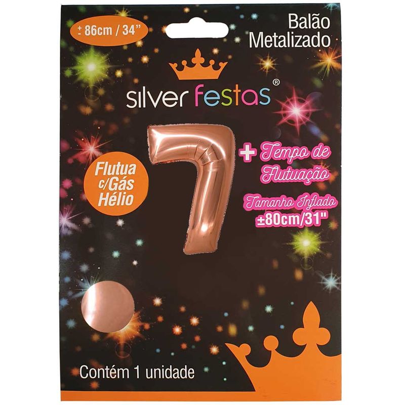 Balão Metalizado Rosê Gold 80cm Número 7 - Silver Festas