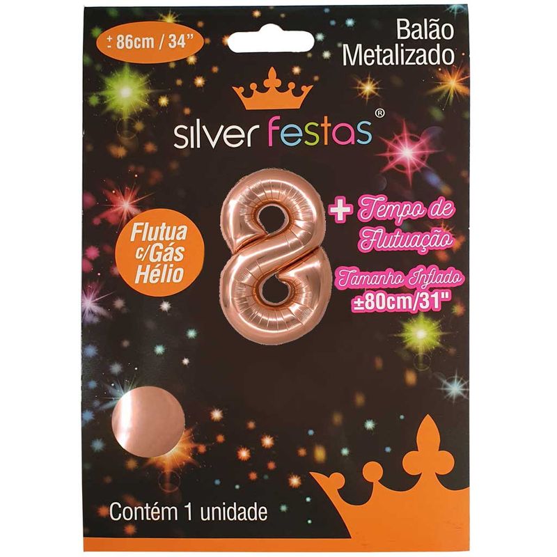 Balão Metalizado Rosê Gold 80cm Número 8 - Silver Festas