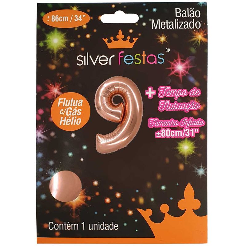 Balão Metalizado Rosê Gold 80cm Número 9 - Silver Festas