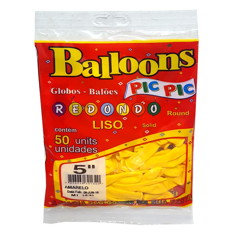 Balão Redondo Amarelo Tamanho 5 c/50 - Pic Pic