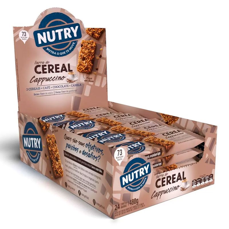 Barra de cereal sabor cappuccino. Composta por 3 cereais + café + chocolate + canela, é ideal para te acompanhar durante as atividades do dia a dia. Display com 24 unidades.