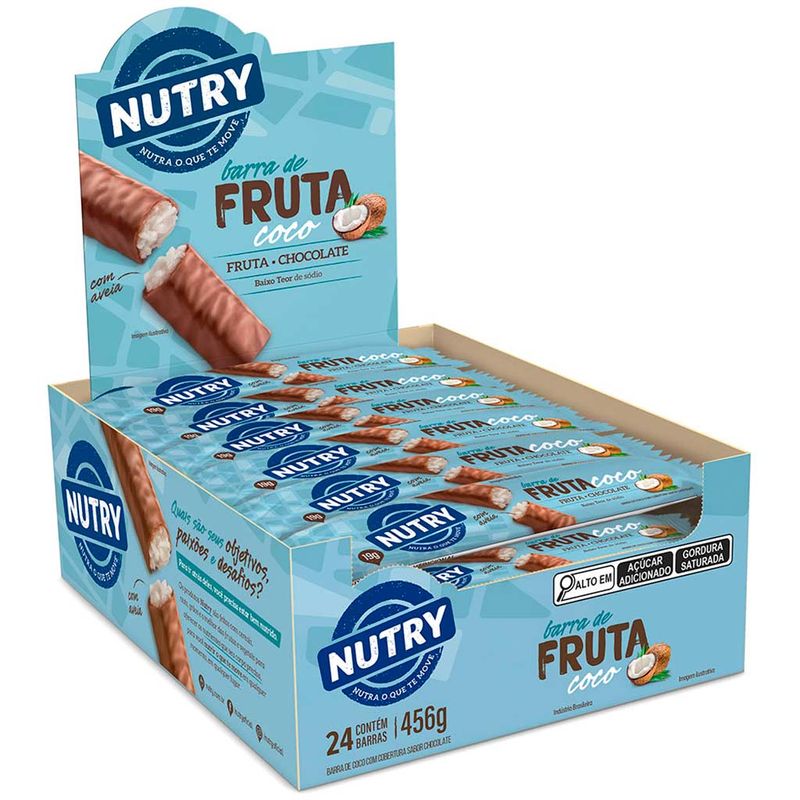 Barra de fruta sabor coco com cobertura de chocolate. A deliciosa combinação de fruta e chocolate. Gostosa e ideal para um lanchinho a qualquer hora. Embalagem contendo 24 unidades de 19g cada.