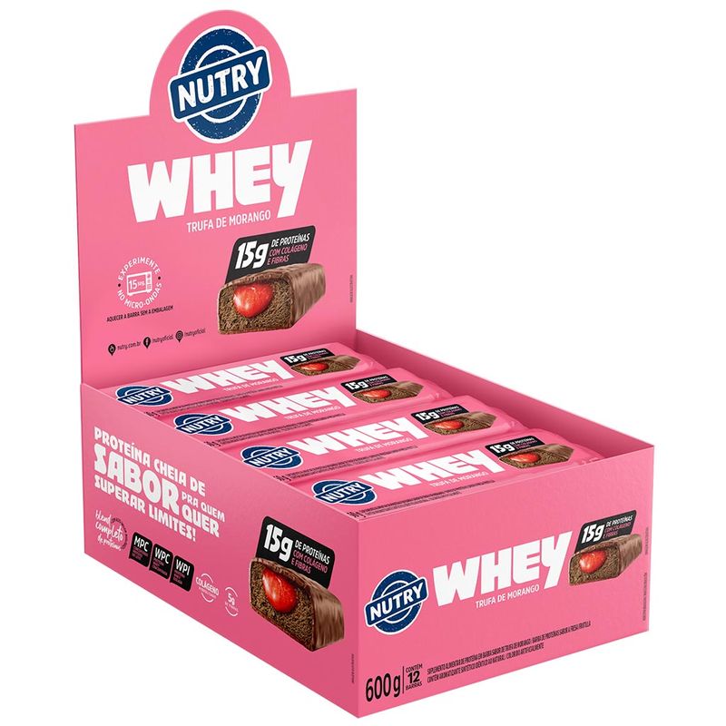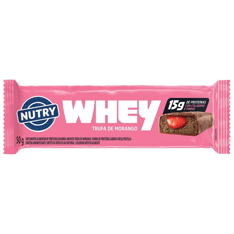 A Barra de Proteína Whey Nutry Trufa de Morango é um suplemento alimentar de proteína com colágeno e fibras. Gostosa e recheada, é ideal para um lanche pós treino. Experimente aquecer no micro-ondas por 15 segundos!