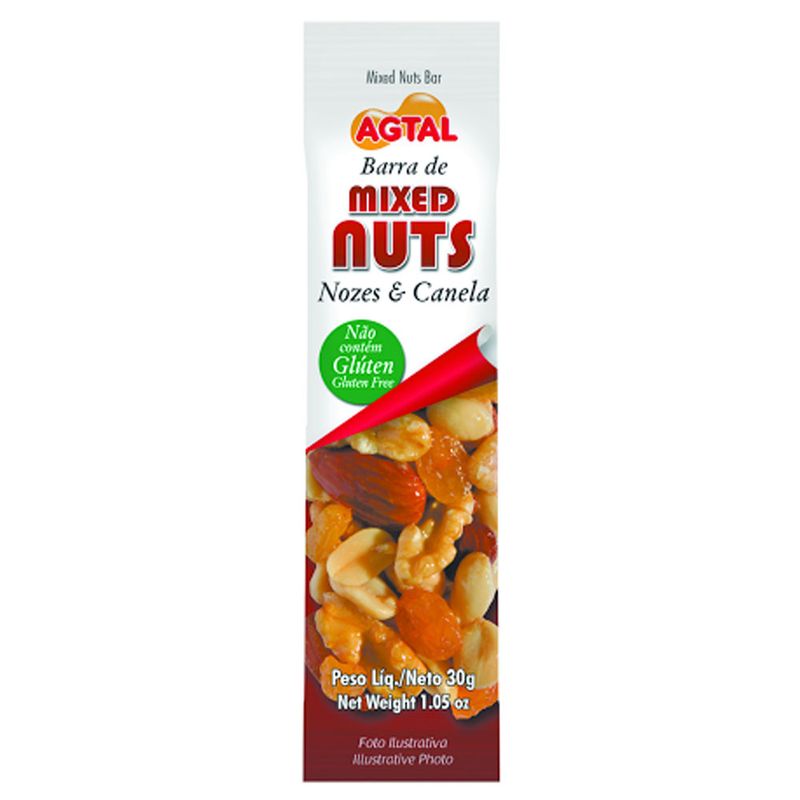 A Barra Mixed Nuts Nozes e Canela, da Agtal, é uma barra composta por um mix de castanhas com um toque de canela, que além de ser deliciosa, traz diversos benefícios para a nossa saúde.