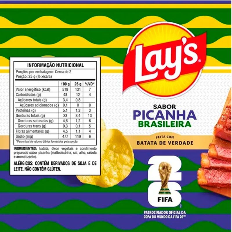 A linha de edição limitada da Lay’s foi inspirada na Copa do Mundo Fifa, trazendo sabores típicos de diferentes países para uma experiência única e cheia de personalidade. O sabor Picanha Brasileira homenageia a tradição gastronômica do Brasil, combinando sofisticação e muito sabor em cada batata.