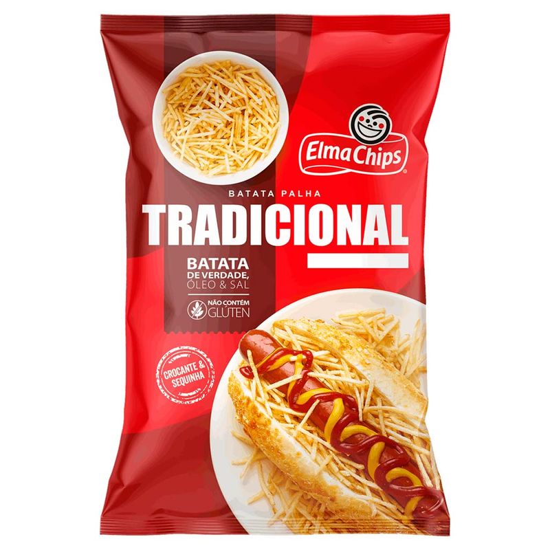 Batata Palha tradicional Elma Chips feita com batatas de verdade, cuidadosamente preparadas até ficarem crocantes e deliciosas! E sua preparação tem somente 3 ingredientes, batata, óleo e sal.