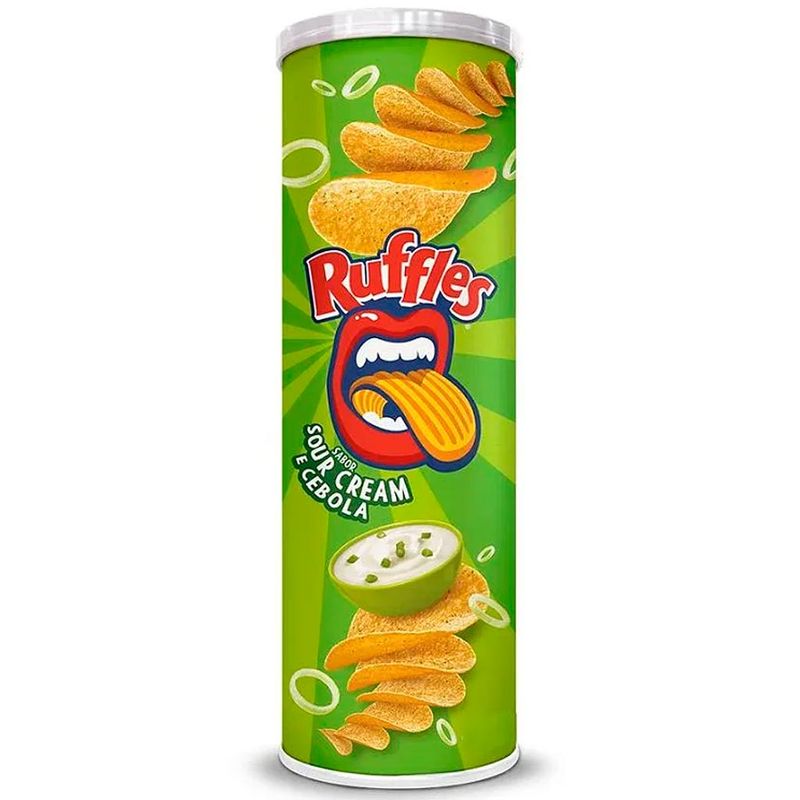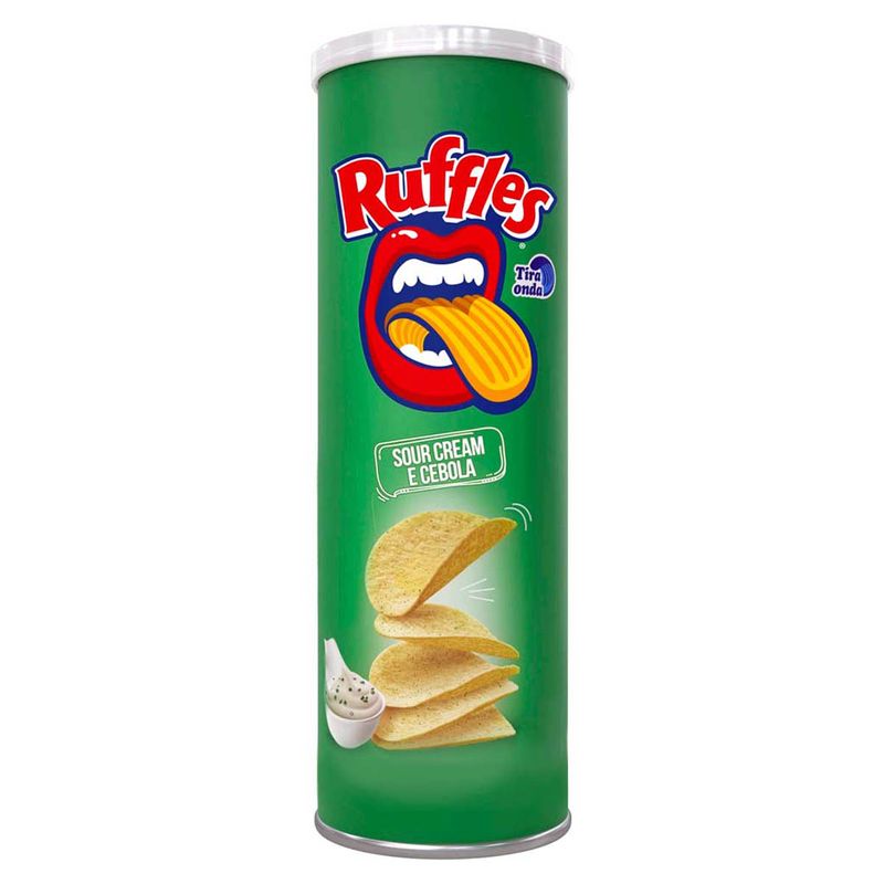 A famosa e tradicional batata Ruffles sabor sour cream e cebola em novo formato. Essa versão lisa e numa embalagem de tubo vai te conquistar!