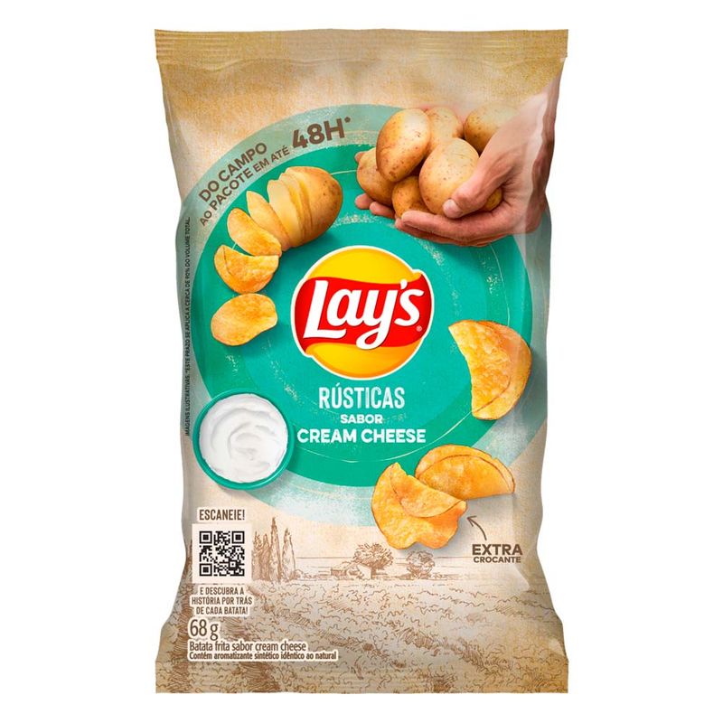 Batata Lays Rústica sabor Cream Cheese. É extra crocante, com fatias mais grossas e aspecto rústico.