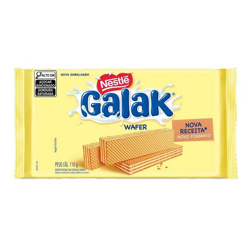 Galak agora versão wafer recheado. Crocante e saboroso! São 3 biscoitos fresquinhos e crocantes intercalados por 3 camadas bem servidas de um recheio muito especial.