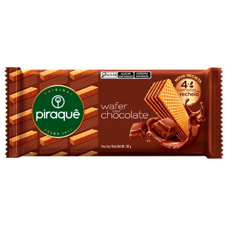Delicioso biscoito wafer com recheio sabor chocolate 100g piraquê