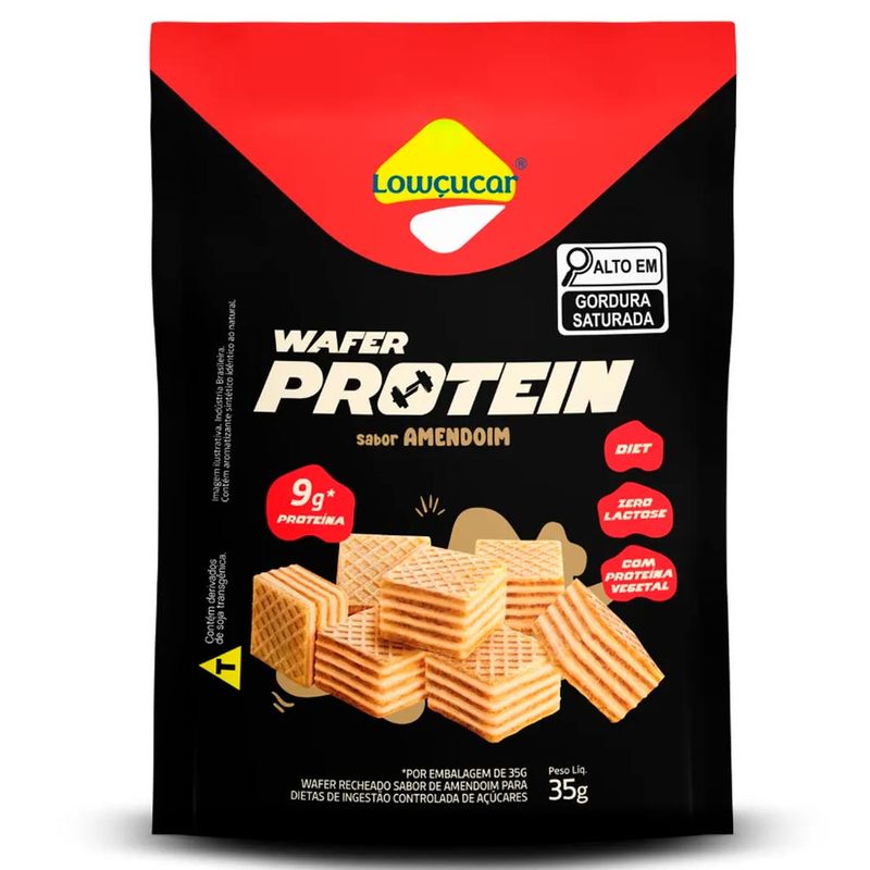 Wafer recheado sabor amendoim proteico para dietas de ingestão controlada de açúcares e restrição de lactose. A escolha ideal para quem deseja um lanche saboroso que apoie suas necessidades nutricionais. Com um delicioso recheio e 9g de proteína vegetal por porção, este wafer é perfeito para quem busca uma opção prática e saudável no dia a dia.