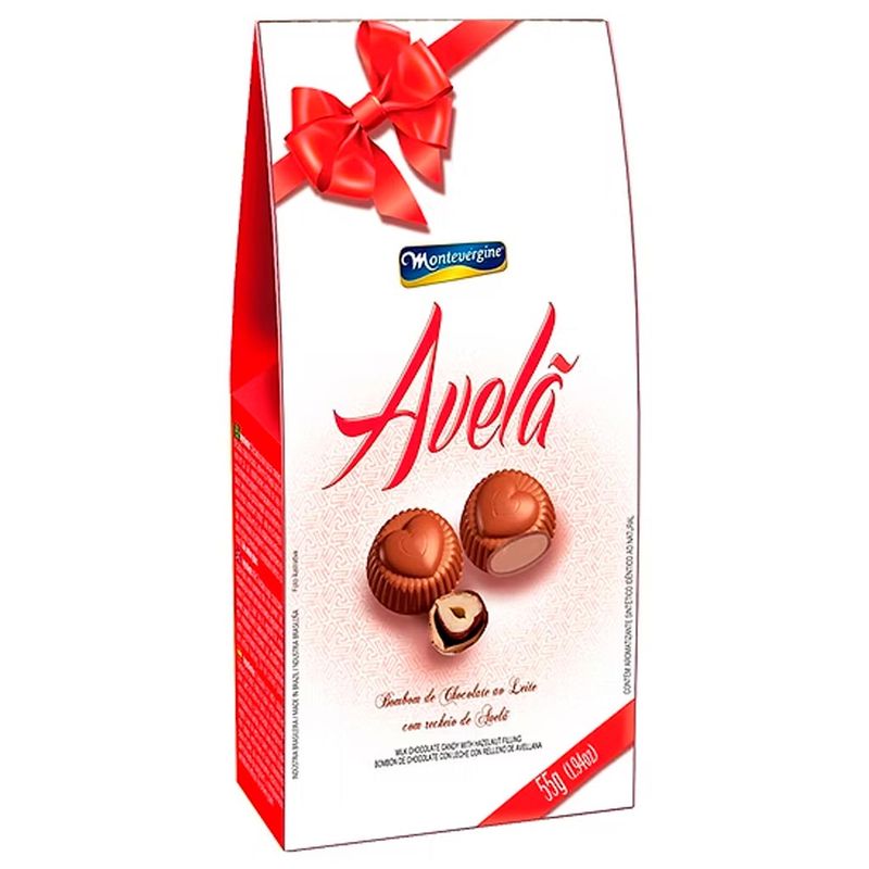 Delicioso bombom de chocolate ao leite com recheio sabor avelã. Ideal para se deliciar ou presentear alguém. Embalagem de 55g contendo aproximadamente 4 unidades.
