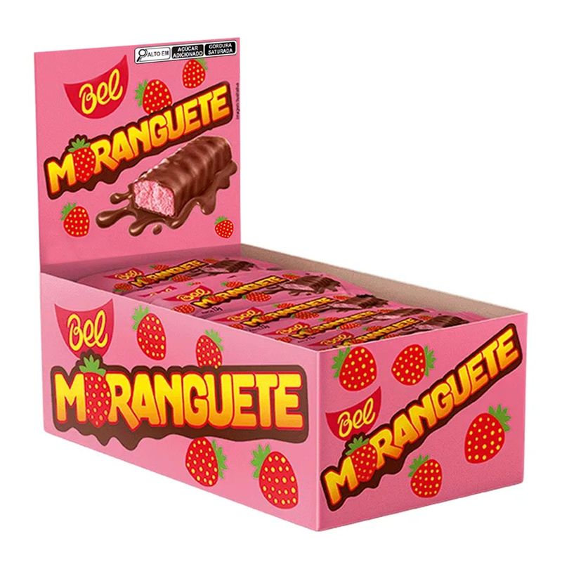 Moranguete, o delicioso bombom com recheio sabor morango e cobertura sabor chocolate ao leite. Irresistível! Caixa contendo 24 unidades de 25g cada.