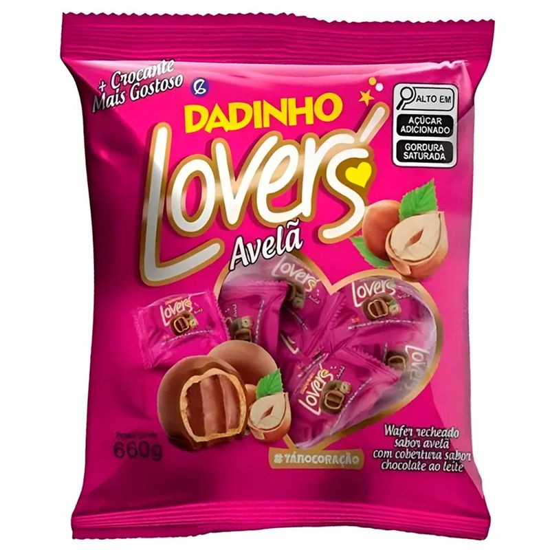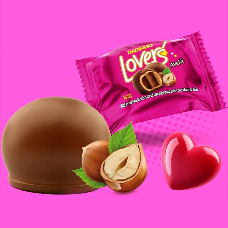 Bombom Dadinho Lovers Avelã, um wafer recheado sabor avelã com cobertura sabor chocolate ao leite. Crocante, cremoso e gostoso. Você vai se apaixonar na primeira mordida!