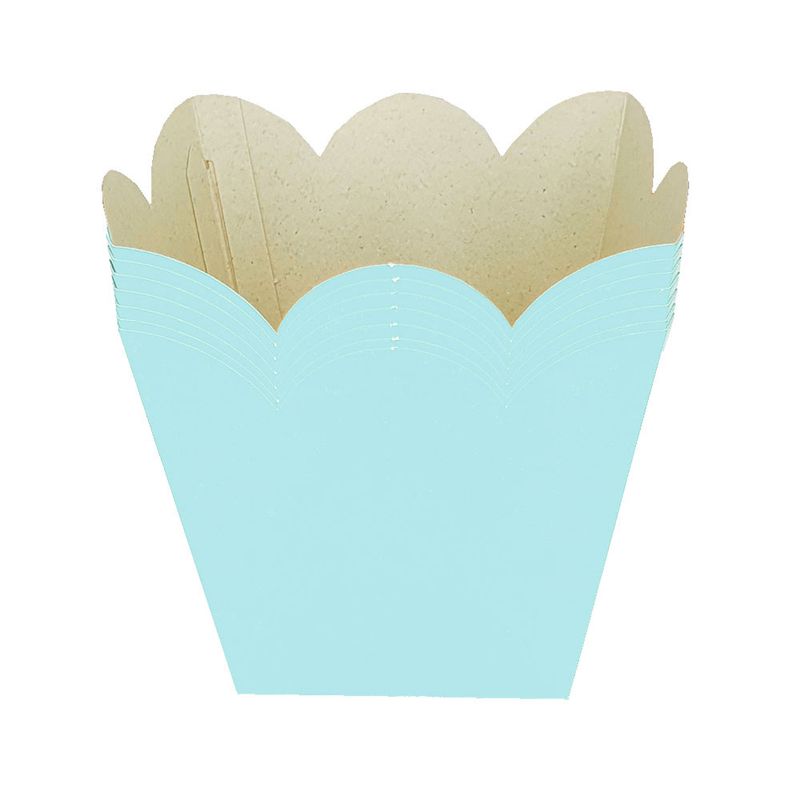 Cachepô azul claro ideal para decoração de festas. Embalagem com 8 unidades.Medidas: 7cm os lados e 9cm de alturaComposição: Papel offset e cola