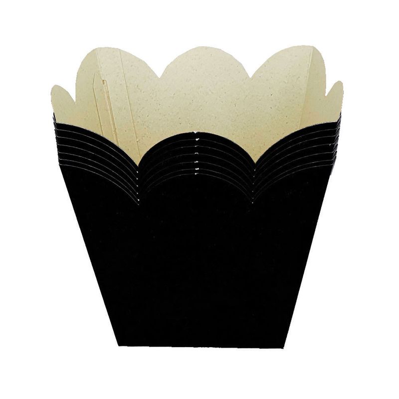 Cachepô preto ideal para decoração de festas. Embalagem com 8 unidades.Medidas: 7cm os lados e 9cm de alturaComposição: Papel offset e cola