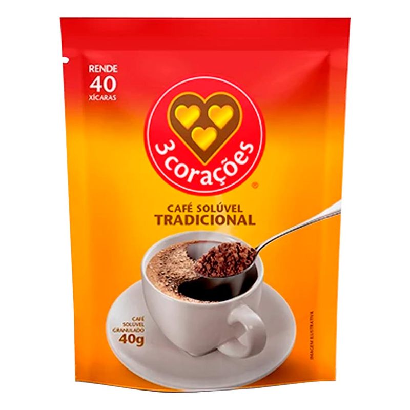 Café solúvel tradicional. Prático, delicioso e com toda a qualidade 3 corações. Rende 40 xícaras.