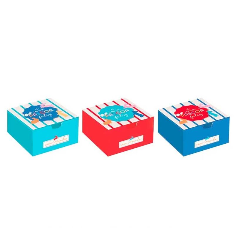 Caixa Diver para 4 docinhos Feelings, ideal para você dar presentes nesta Páscoa! Disponível em 3 cores diferentes, sem opção de escolha.Medidas: 8,5cm largura por 8,5cm comprimento e 3,5cm de altura.Contém 1 Unidade.