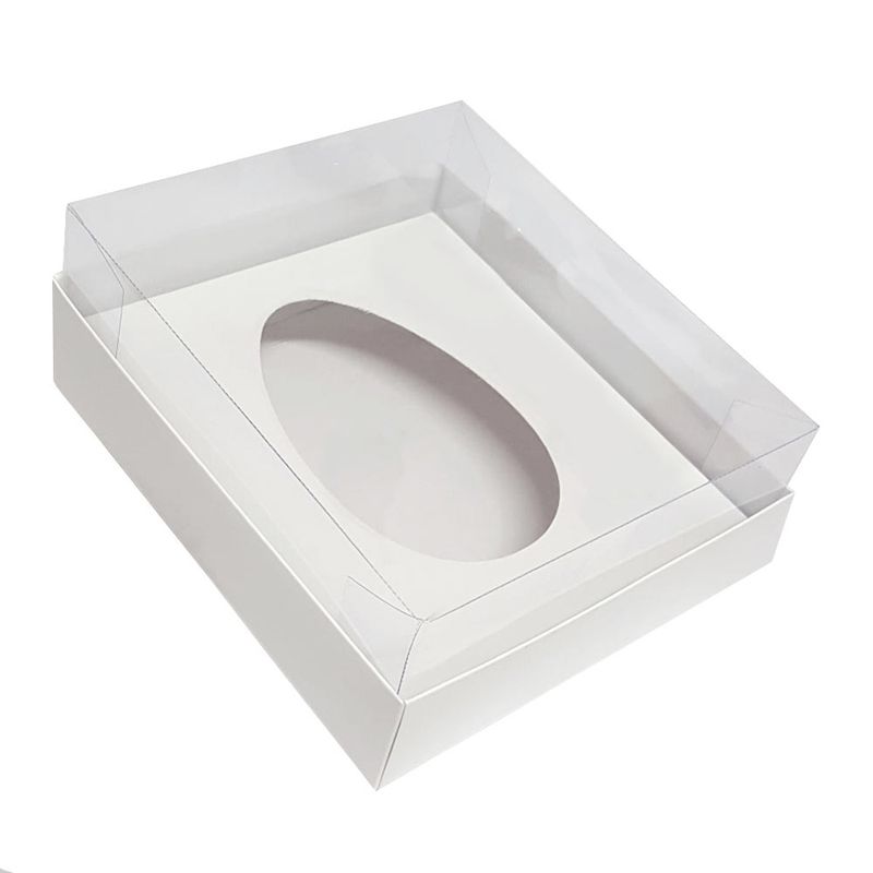 Valorize os seus ovos de páscoa caseiros com essa linda embalagem! Ideal para cascas de ovos de 350g. Medidas Caixa: 20cm x 17cm x 8cm. Composição: PET Cristal e Papel Cartão. Embalagem contendo 5 caixas desmontadas.