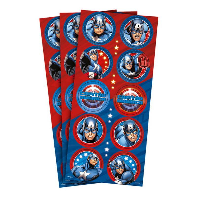Artigos FestaTemáticosCapitão América Adesivo Redondo c/30 - Regina