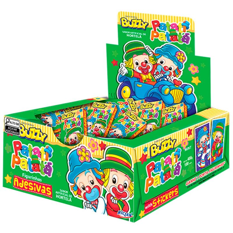 Chicle de bola no sabor hortelã. Com figurinhas adesivas lindas e descoladas do Patati Patatá para a criançada colecionar. Saboroso e divertido!