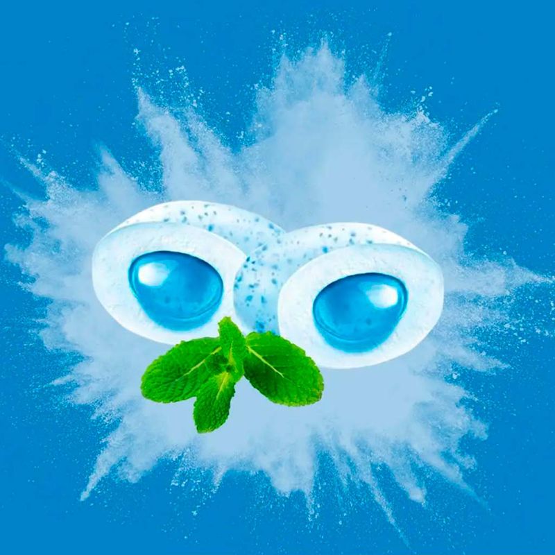 Ingredientes: goma base, maltodextrina, óleo de canola e girassol, edulcorantes maltitol, sorbitol, xilitol, xarope de maltitol, aspartame e acesulfame de potássio, umectante glicerol, aromatizantes, emulsificantes lecitinas, espessante carboximetilcelulose sódio e goma xantana, glaceante cera de carnaúba, antioxidante BHT e corante azul brilhante FCF. Alérgicos: contém derivados de soja. Não contém glúten. Contém fenilalanina.