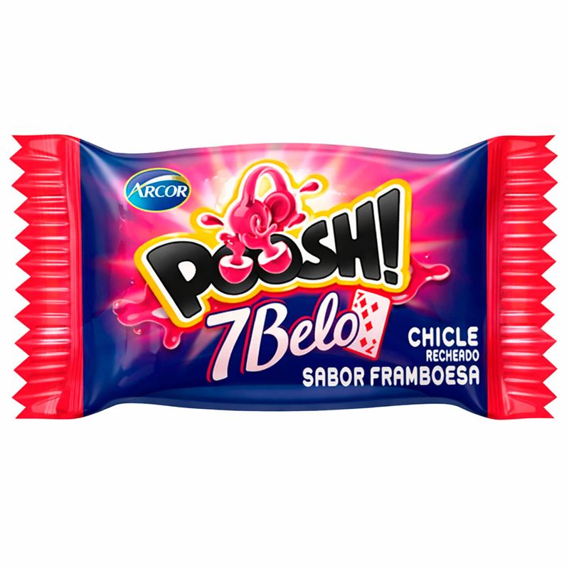 Chiclete em formato de bola recheado que é uma explosão de sabor. Poosh tem tamanho grande, casquinha crocante e muito recheio líquido no delicioso sabor 7 Belo. Embalagem contendo em média 40 unidades.