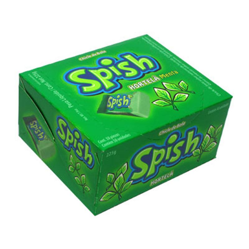Chicle de bola sabor hortelã. Embalagem de 160g contendo aproximadamente 40 unidades.