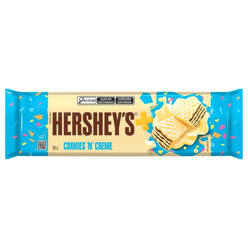 Hersheys Mais é um wafer super crocante, recheado e com cobertura do sabor icônico Hersheys Cookies n Creme! É difícil abrir e comer um só!