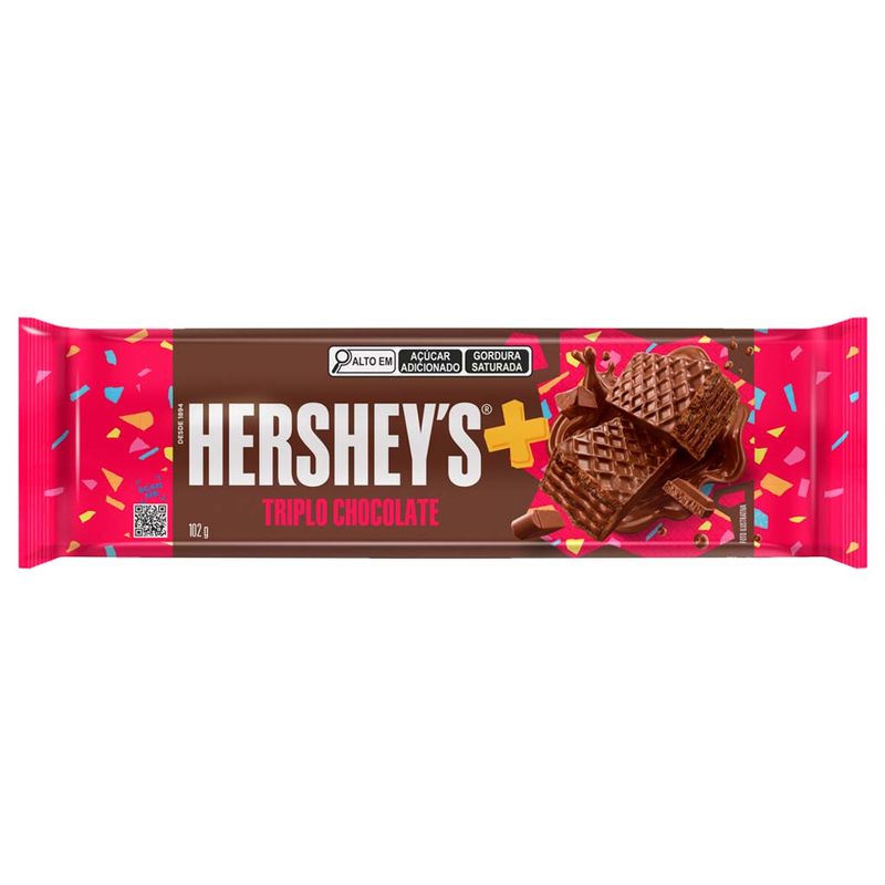 Hersheys Mais Triplo Chocolate é um wafer super crocante pra quem realmente ama chocolate! São 3 camadas: cobetura, recheio e wafer! É difícil abrir e comer um só!
